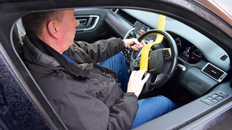 Locks don’t come any cheaper or easier to fit. The Topfree uses a plastic-covered cable lock that loops around the steering wheel and then clips into the driver’s seat belt anchor point.