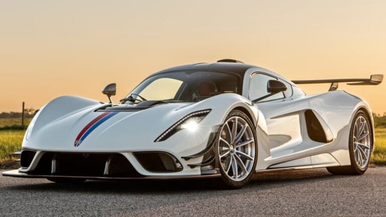 Hennessey isn’t finished milking the Venom. The Texas performance shop revealed the Venom F5 Coupe in December 2020, the Venom F5 Roadster in August of last year, and is kicking off 2023 with the Venom F5 Revolution Coupe. In Hennessey’s hierarchy of speeds, the original car was engineered to reach the highest production-car top velocity; the Roadster that followed was engineered to provide the most visceral experience; this F5 Revolution was made to master the track. Worked up from the initial F5 Coupe, the F5 Revolution gets the same basic goodies — carbon tub, 6.6-liter twin-turbocharged V8 with 1,817 horsepower and 1,193 pound-feet of torque, seven-speed automated single-clutch sequential transmission, carbon ceramic brakes. Hennessey says “the engineering team focused on reducing mass” so that the newest trim is the lightest Venom model and “tips the scales below 3,000 pounds.” However, the the F5 Coupe is already less than 3,000 pounds and company didn’t specify a new weight.