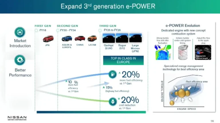 The upcoming third-generation e-Power system is 20% more fuel-efficient and costs 20% less than the second-generation system, while providing better performance.