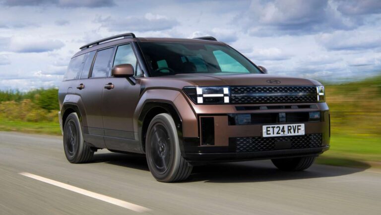 The Santa Fe in regular two-wheel drive hybrid form has an official figure of 41.5mpg, while the thirstier four-wheel drive version gets 38.7mpg. Company car drivers will be more interested in the 38-mile EV range of the plug-in hybrid version, although this is beaten by the 48-mile Peugeot 5008 PHEV, or the 75-mile Skoda Kodiaq iV. Every Santa Fe is over £40,000 when new, meaning it’ll cost more in yearly VED road tax than cheaper alternatives. Read more about the Hyundai Santa Fe’s MPG, emissions and running costs…