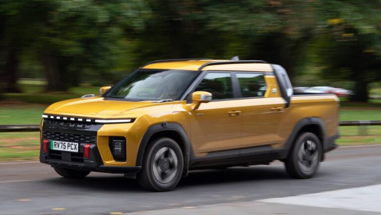 Do so, and the Musso EV transforms into a quiet, comfortable and relatively sprightly truck. The two electric motors and 339Nm of instant torque mean it picks up keenly (0-62mph takes eight seconds), while the deep tyre sidewalls mean there’s little road noise to disturb the sound of silence. Only once you approach the national speed limit does wind noise start to become an issue, but if you plan to use the vehicle mostly around town or on rural roads, it should be fine.