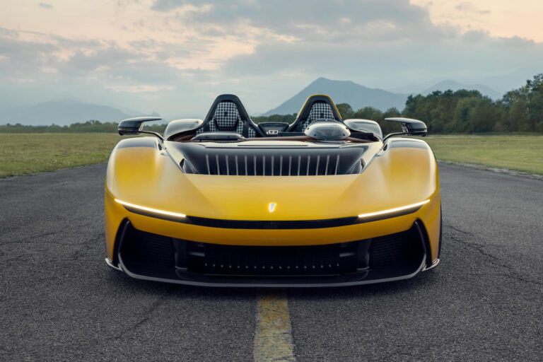 The sculpted body is made entirely from carbon fiber, allowing for a sleek, aggressive stance that’s both lightweight and structurally rigid. Signature Pininfarina flourishes like sweeping lines, exposed fender arches, and heritage-inspired color schemes make it unmistakably Italian, but still futuristic.