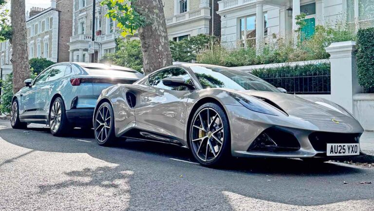 On first impression, I like the silver-blue monochromatic palette inside and out. Parked on my crowded London street, the 4 looks huge, even next to the gargantuan BMW M5 Touring that I also happened to have on test when the Polestar arrived. The Swedish car’s tall stature, sloping roofline and broad shoulders mean it’s a cross between an SUV, a coupé and traditional saloon.