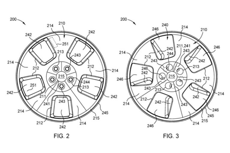 As described by Rivian in the filing, the wheel cover would include a series of openings aligning with wheel spokes when the cover is in one position, and block them to create a smooth surface in another. That movement would be actuated by a spring, which would rotate the cover to different positions.