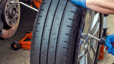 The 555mm-long bar resembles a huge screwdriver, but is actually a lever that helps mount wheels back on hubs accurately. With the wheel off the car, you pull one of four CNC-machined stainless steel adaptor pegs from the dedicated rubber storage holder affixed to the top of the Sealey’s shaft and place it either in the hub’s bolt hole, or over the bolt if it uses nuts as fixings.
