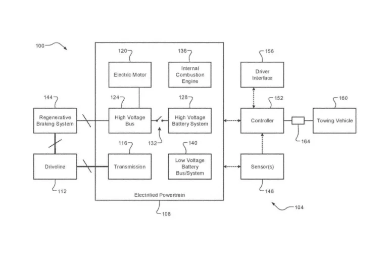 In earlier patent application, published by the USPTO in 2021, Ford takes things a step further by suggesting that EVs could selectively be charged when towed. That also opens up the possibility of using the EV to help boost the tow vehicle up hills, similar to what startups Pebble and Lightship have built into travel trailers.