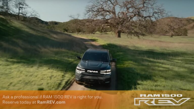 This commercial revealed the new electric Ram Rev pickup, and it’s themed like a prescription ad for an antidote to “Premature Electrification.” A concerned narrator in the Ram spot asks if you’re afraid that going electric too soon will mean “you might not be able to last as long as you like,” and there’s a guy on a pier who’s going to need some new equipment if he wants to catch fish. We’re also told there are “options being designed to extend range in satisfying ways,” so if this truck isn’t right for you, you have choices. All the commercial’s missing is a silly medical marketing name and six seconds of speed-reading gibberish about side effects like intestinal bleeding and death. Which are two more good things.